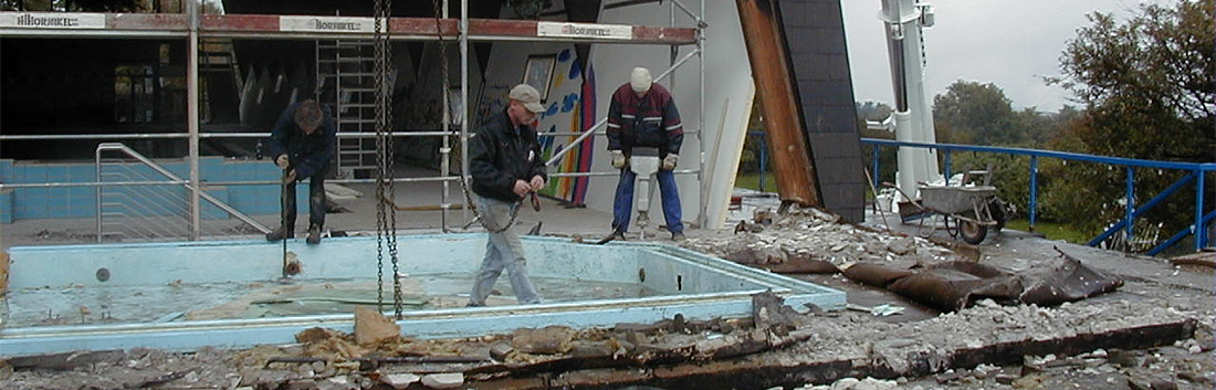 Komplette Abbrucharbeiten und Entkernungen mit Entsorgung für Privathaushalte, Gewerbe und Industrie führen wir mit eigenem Fachpersonal und Vertragspartnern unter Einhaltung sämtlicher Sicherheits- und Entsorgungsvorschriften aus.